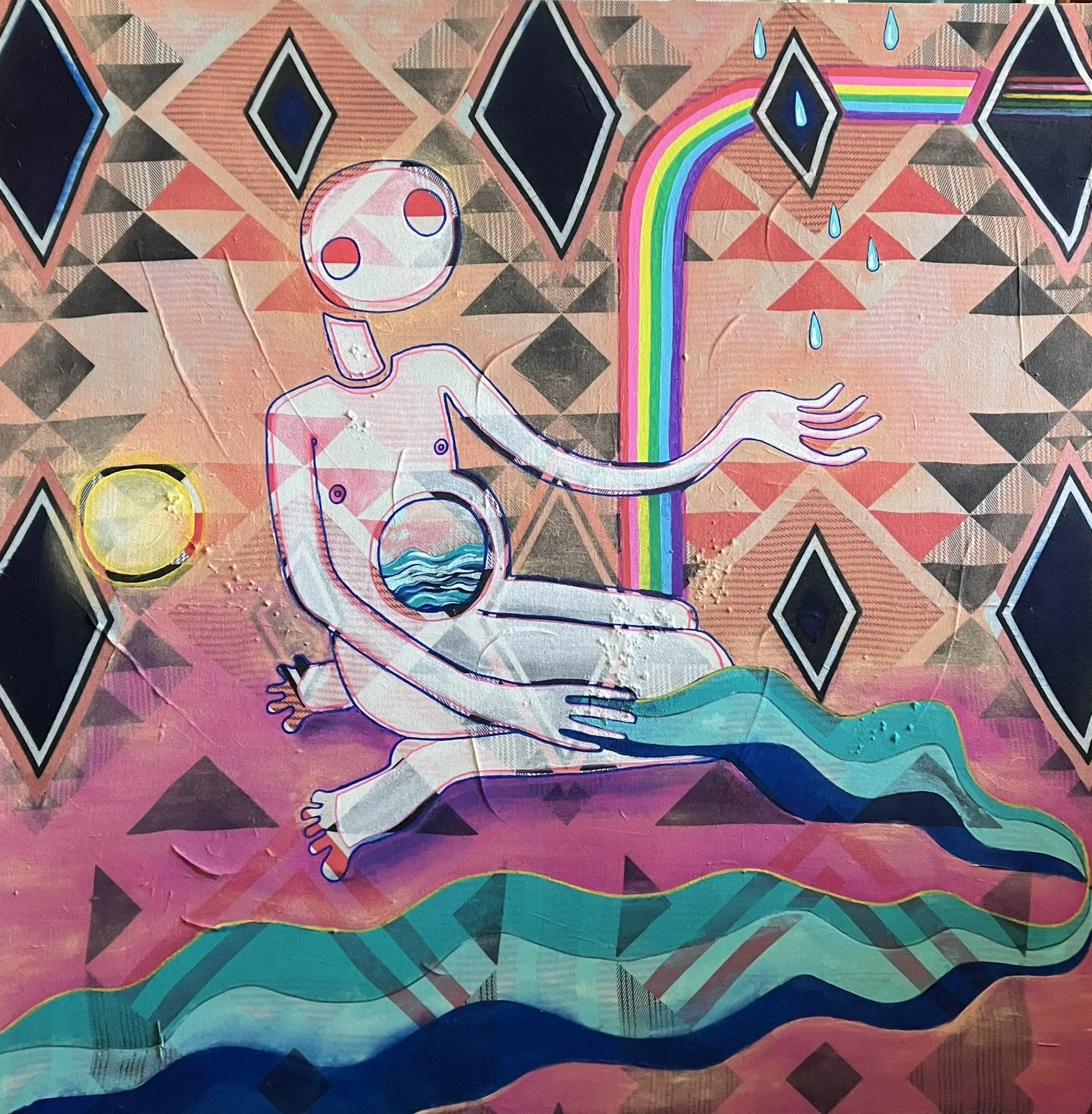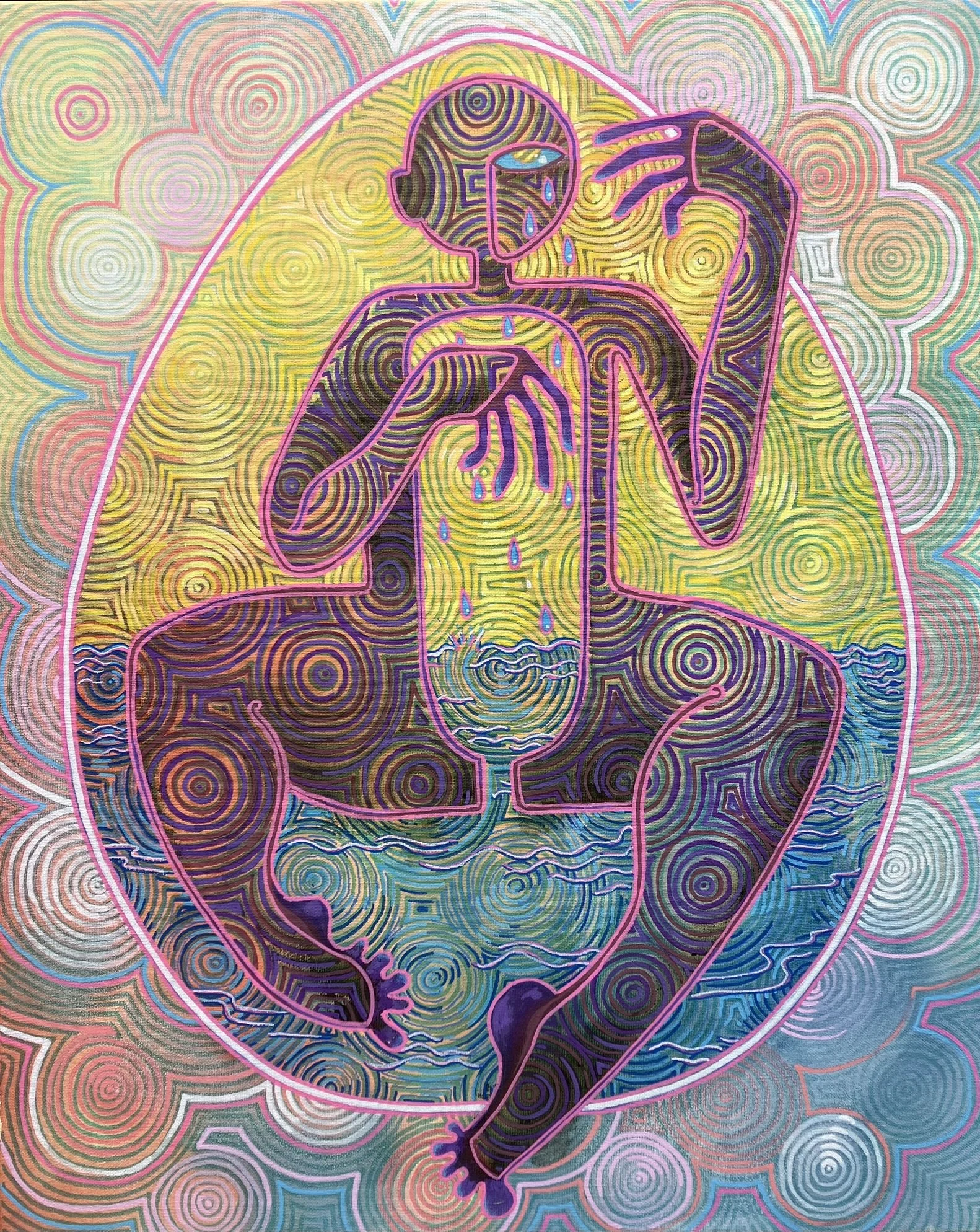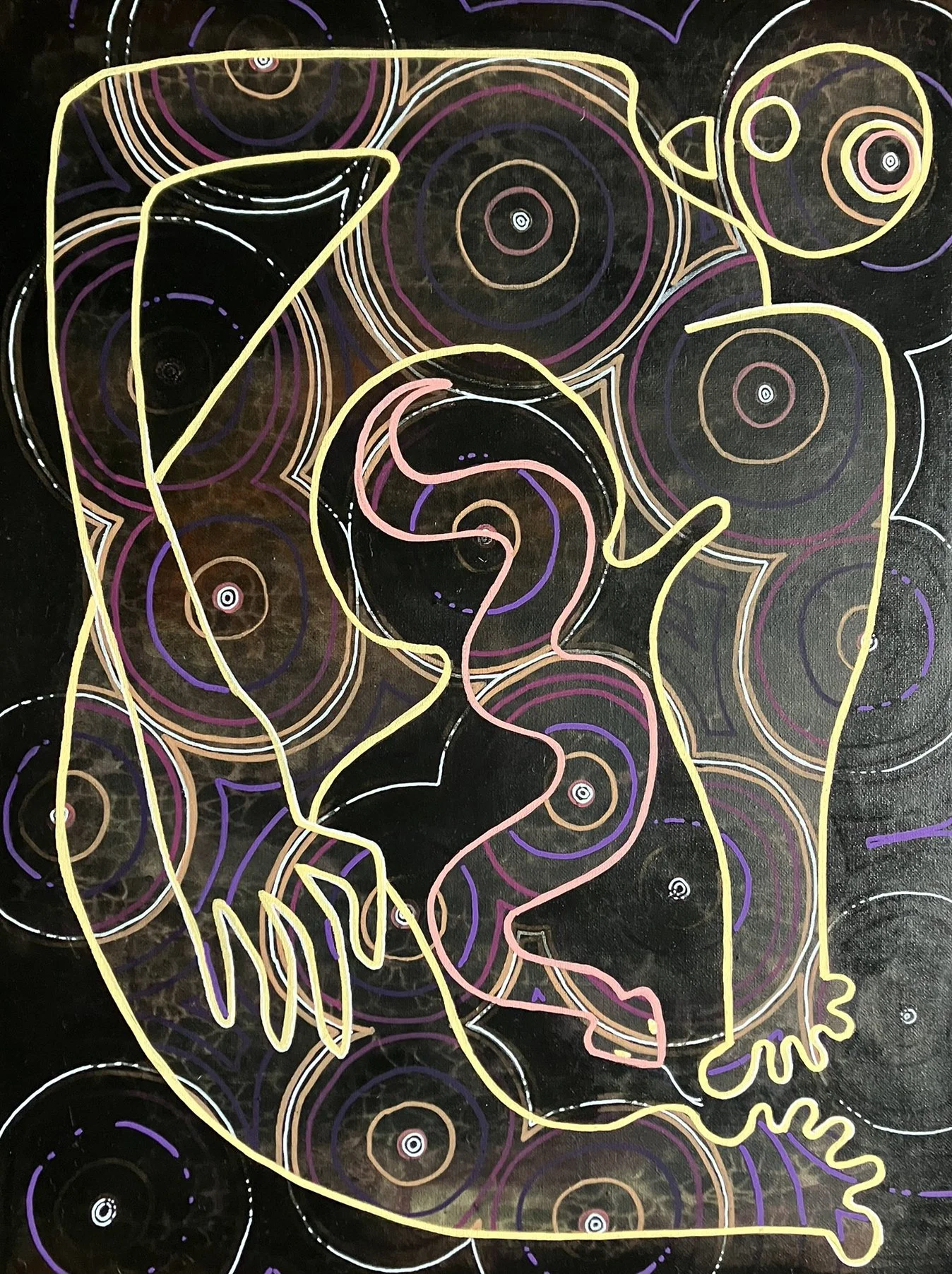 My current body of work arises from entering trance states of spiritual communion. Names are barriers. Please feel.